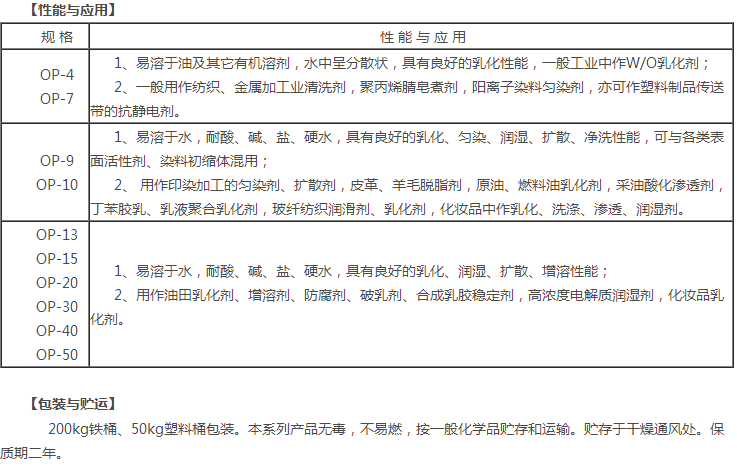 【化學成分】辛基酚聚氧乙烯醚 【類 型】非離子